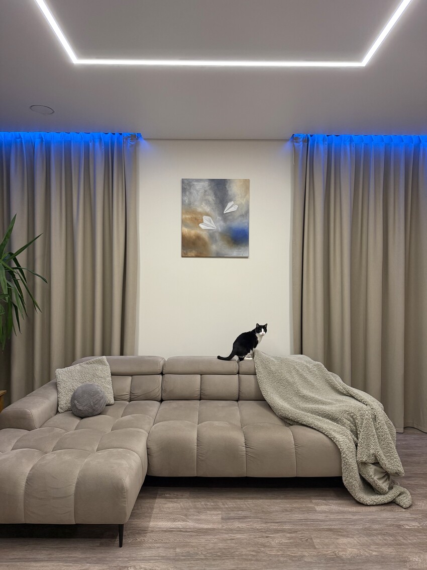 Kūrinys subtiliai papildo jaukų, modernų interjerą.
