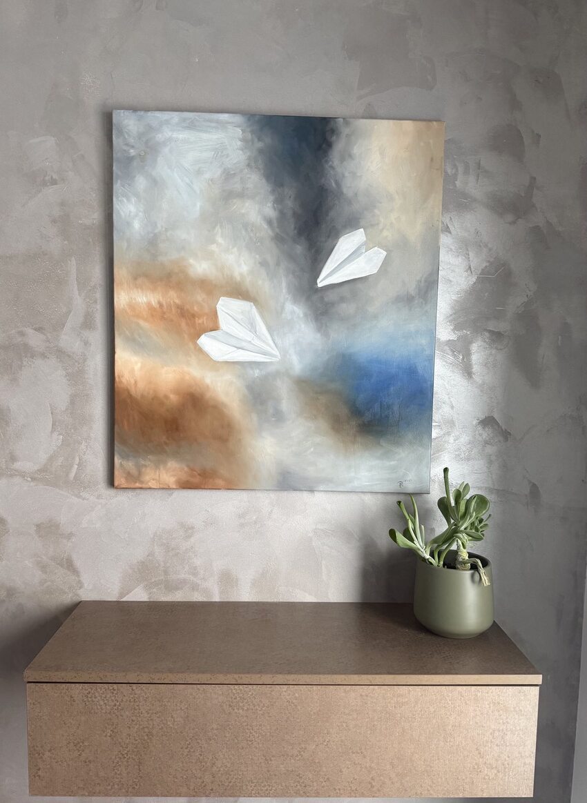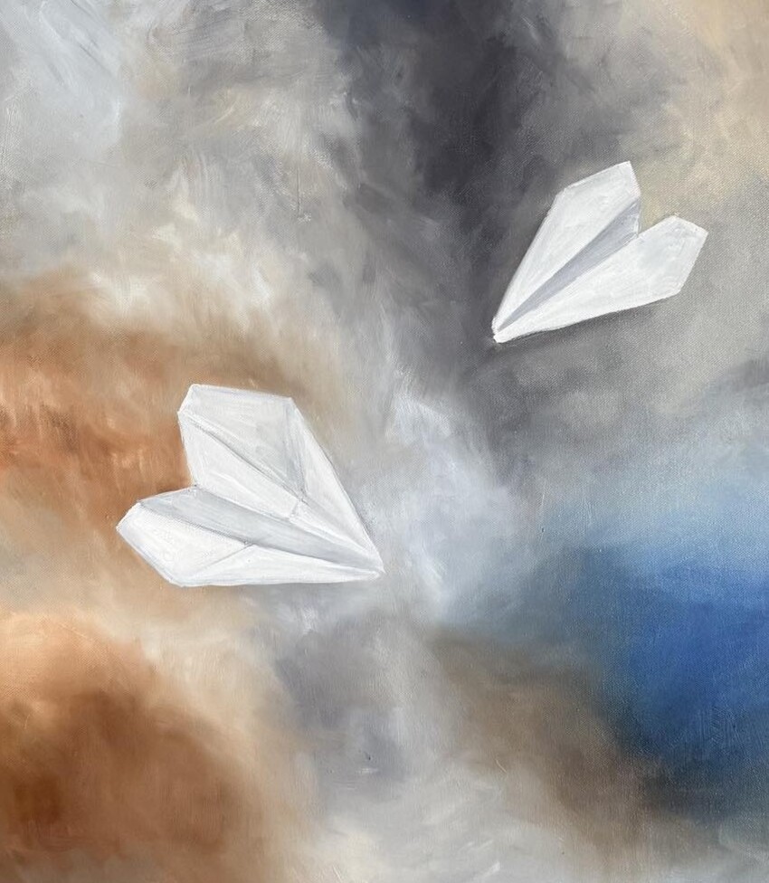 Kūrinio idėja atskleidžia tylų, bet stiprų ryšį. Motyvas vaizduoja du baltus popierinius lėktuvėlius.